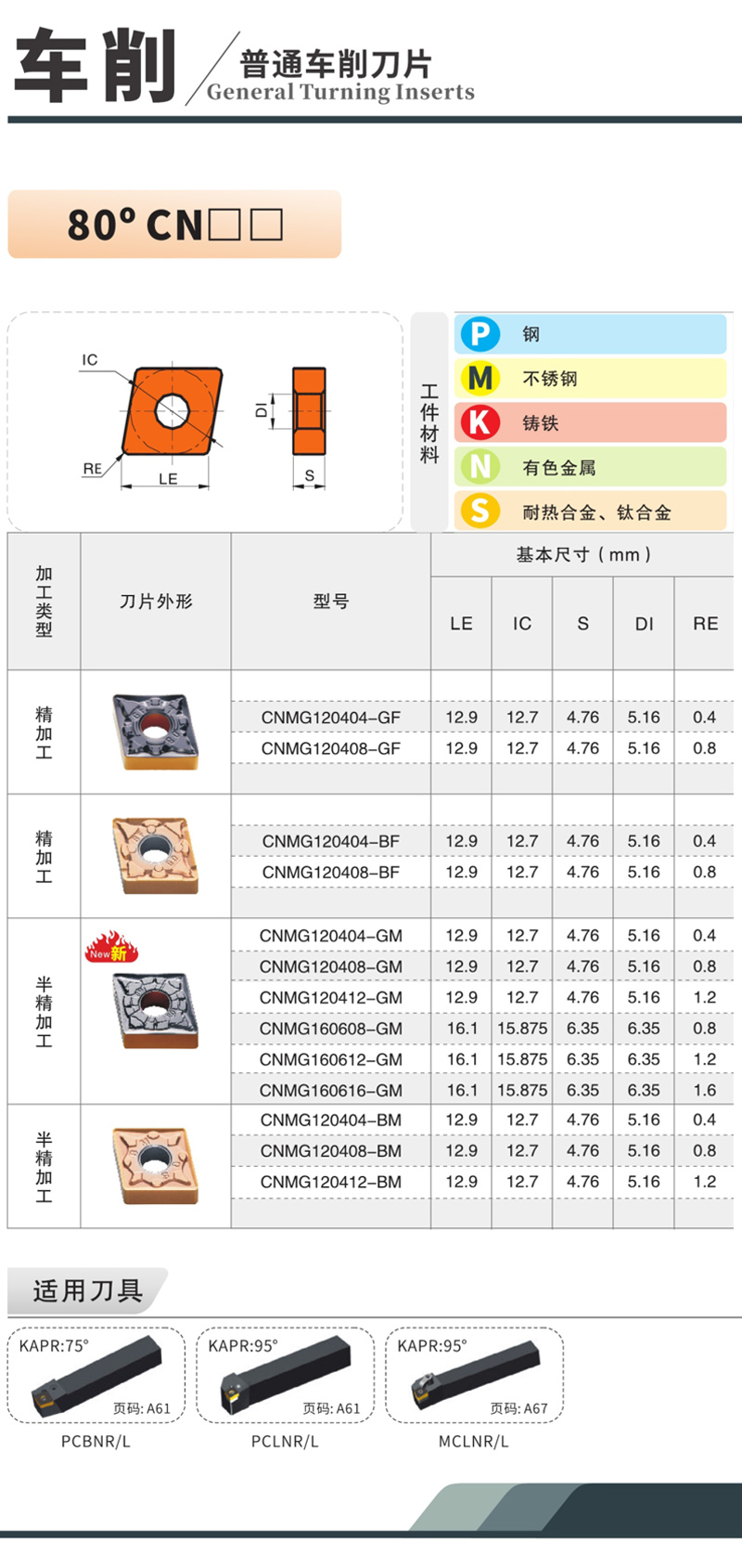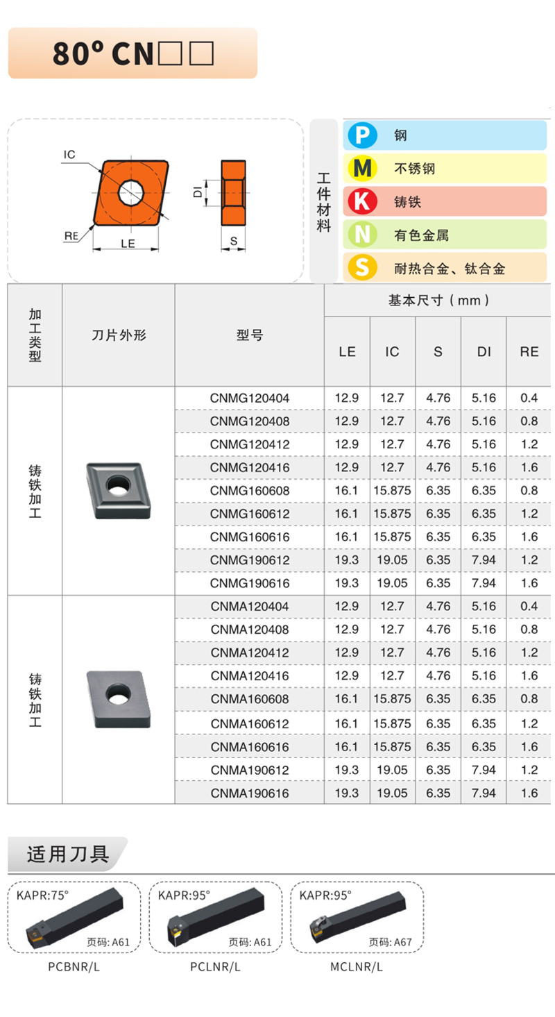 品名:M05-M30數(shù)控刀片 牌號(hào):CNMG090304-EF
