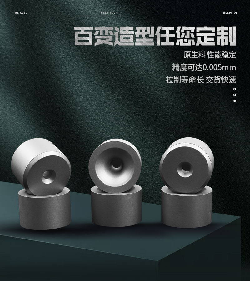 1、使用壽命長---原料加入稀有金屬元素提高耐磨性能,使拉絲模使用壽命提升15%