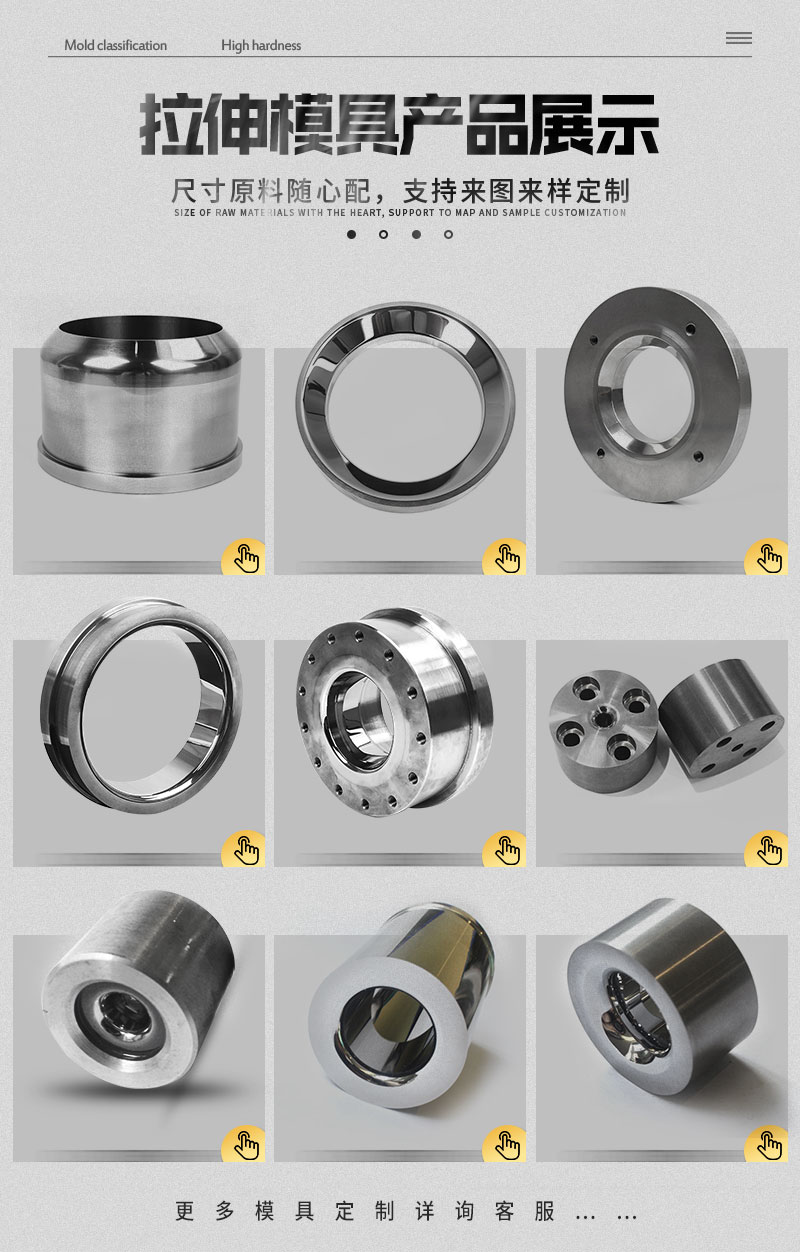 廣泛應(yīng)用于粗、中絲的拉伸模具是各種金屬線材生產(chǎn)廠家(如電線電纜廠、鋼絲廠、焊條焊絲廠等)拉制線材的非常重要的易消耗性模具。我公司堅持為客戶提供高性鎢鋼拉絲模具,精選優(yōu)質(zhì)原料最大限度滿足各類加工使用需求。高精密高精度的精細化模具產(chǎn)品是我們的加工強項,從原材料選擇到成品硬質(zhì)合金模具零件,全程嚴謹控制生產(chǎn)工藝每一個過程,按照客戶高精密圖紙要求作業(yè),以滿足客戶的最佳使用價值。