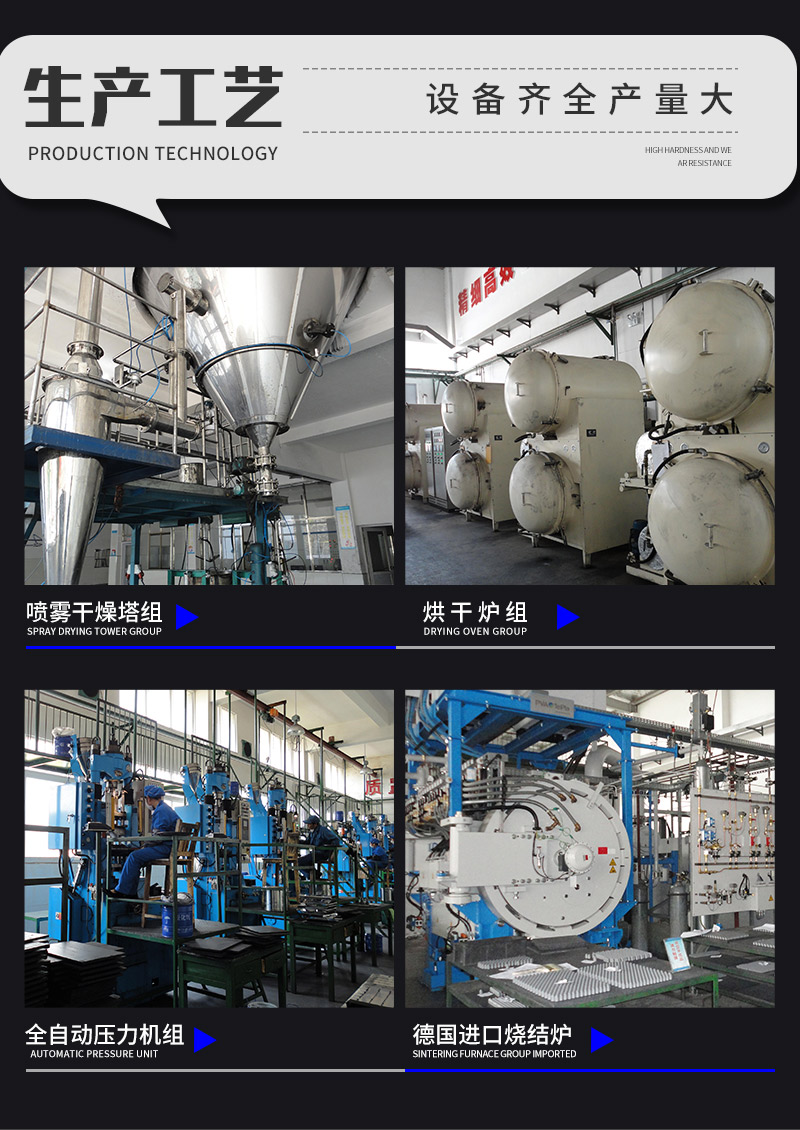2、采用最新100MPa加壓燒結爐燒結,在最后階段采用壓力燒結,致密性得到了大的提高,孔隙度減少,大大地提高了產(chǎn)品的機械性能,沖擊韌性優(yōu)越,不掉塊、 沖擊次數(shù)同比提高更多。